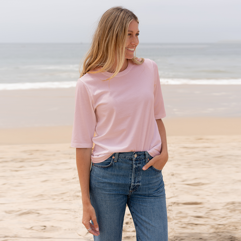 Womens Elbow Sleeve Crew Neck - BlushWomens Elbow Sleeve Crew Neck – Blush