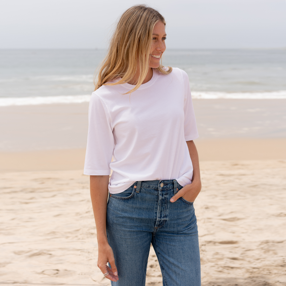 Classic. Timeless. Fit to flatter. This high quality and durable T-shirt won’t let you down it’s our answer to a must-have basic for every woman. Slip into soft, 100% organic cotton that’s sustainably sourced and know that you’ve made a choice that’s good for your wardrobe and the world.