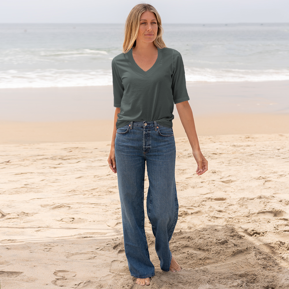 Our best-selling elbow sleeve tee—now with the timeless V-neckline you’ve been asking for. Made from the same ultra-soft, breathable organic cotton as our customer-favorite crew neck, this new style was created by popular demand. Designed for a relaxed yet refined drape, it’s perfect for effortless layering or wearing solo.