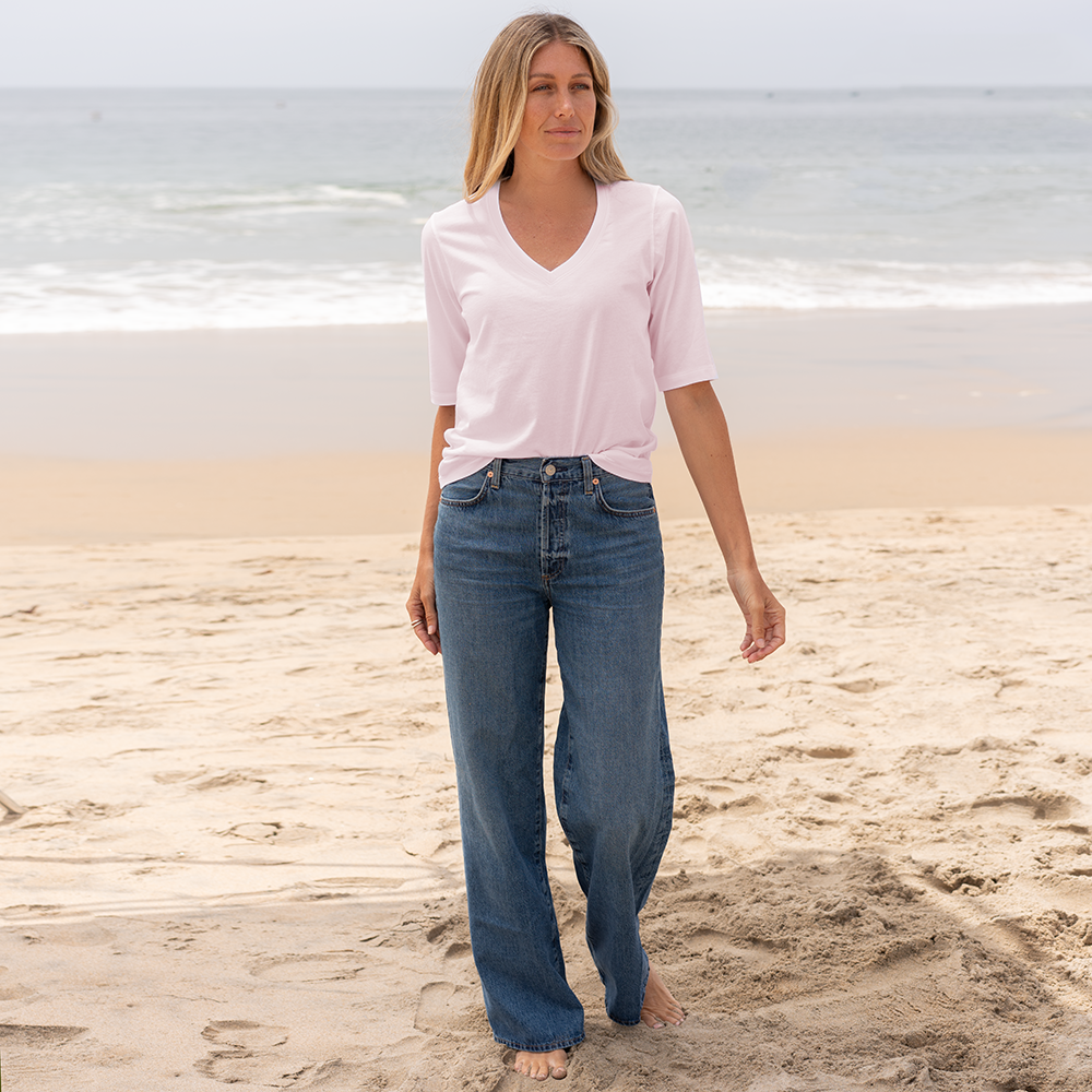 Our best-selling elbow sleeve tee—now with the timeless V-neckline you’ve been asking for. Made from the same ultra-soft, breathable organic cotton as our customer-favorite crew neck, this new style was created by popular demand. Designed for a relaxed yet refined drape, it’s perfect for effortless layering or wearing solo.